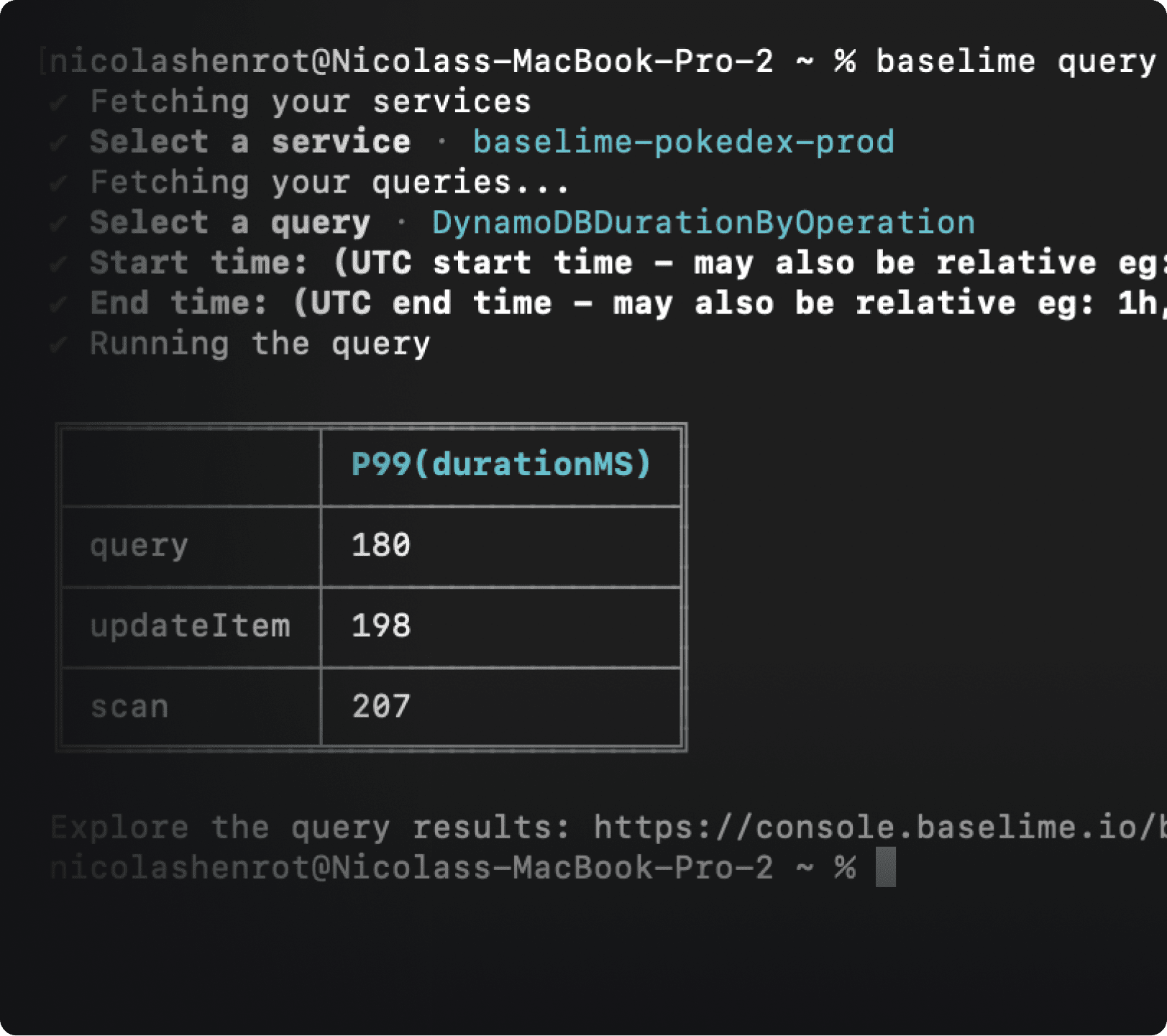 Use Baselime API to create a bespoke observability experience. Custom alerts that trigger based on a spcific flows in your application? Piece of cake.